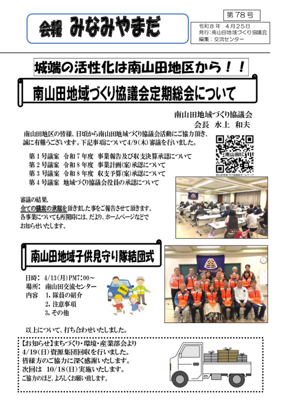 会報みなみやまだ2026年4月号です